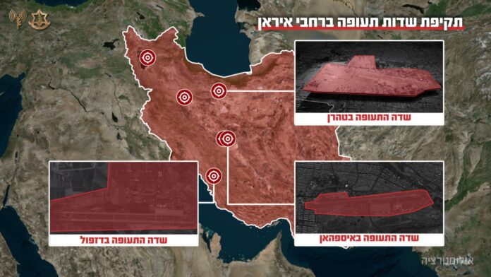 Strikes on the Mehrabad International Airport in western Tehran. (From a post on X)