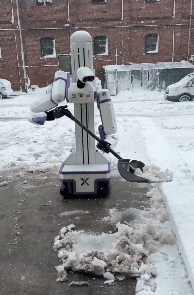 New York-based company Reflex Robotics shared video of one of its robots plowing snow outside its office, carving a narrow path through thick accumulation as wind and heavy snowfall swept across the city.