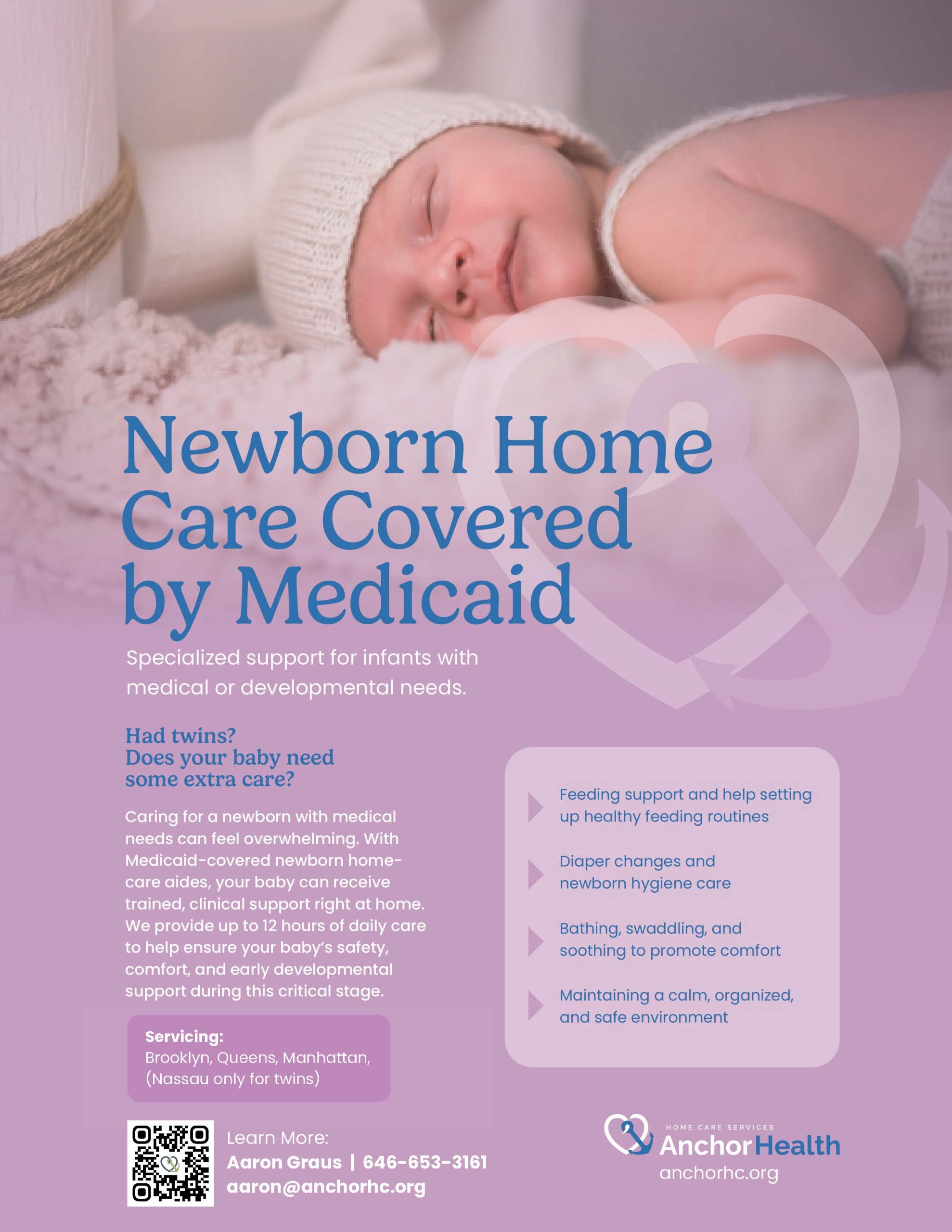 If you live in the five boroughs and brought home/are bringing home a baby with reflux, colic, or recovering from a NICU stay, or twins, find out what you qualify for! Reach Aaron at Anchor Health at (646) 653-3161, or by email at [email protected].