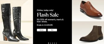 Men’s Shoes Flash Sale Women’s Shoes Flash Sale Boy’s Shoes Flash Sale Girl’s Shoes Flash Sale Handbag, Belts, And Sunglasses Flash Sale Free shipping on $49 orders or select free in-store pickup. Post what deals you find!