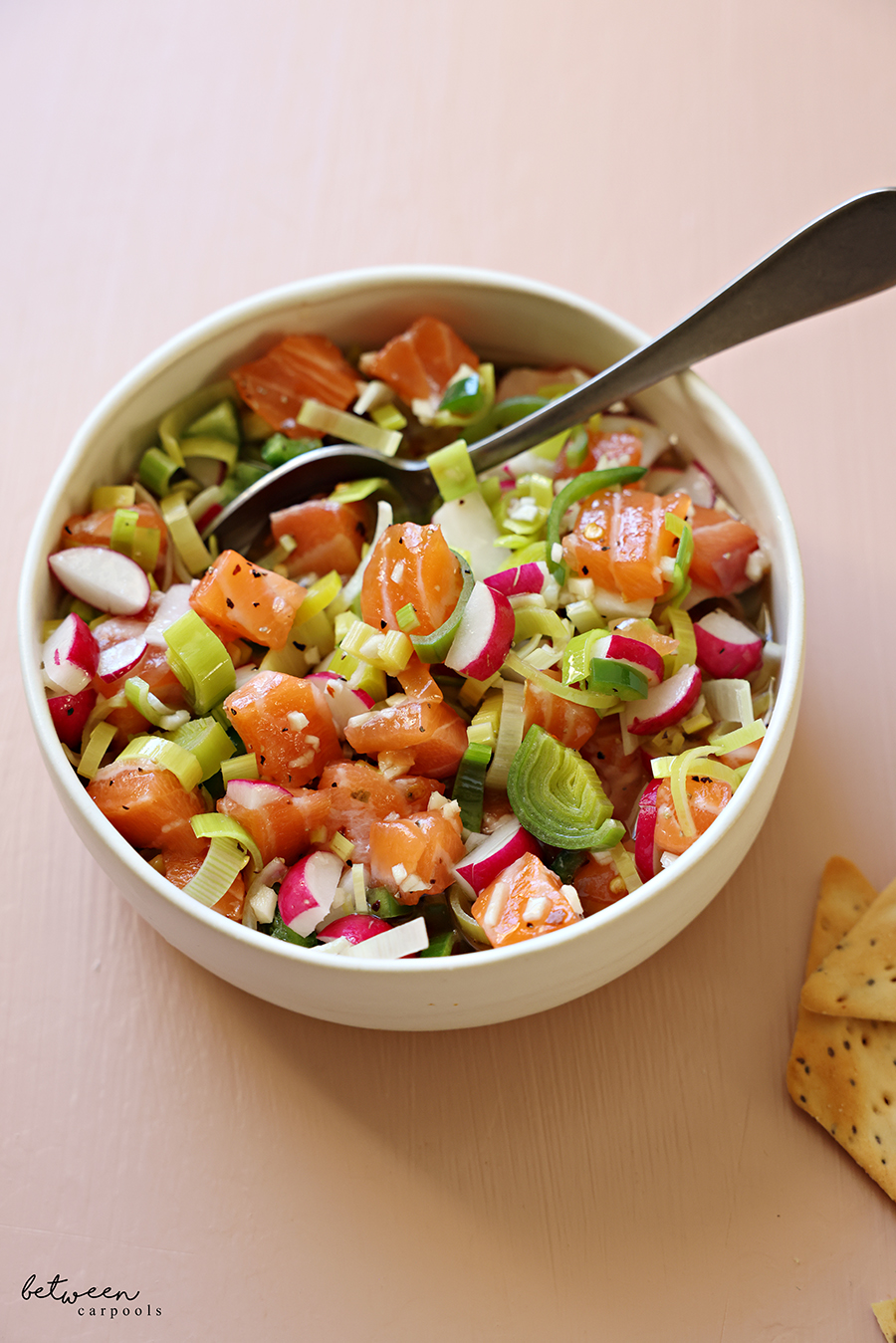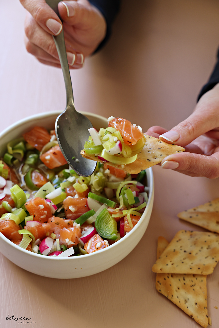 You don’t need to be a crudo lover to absolutely fall for this salmon. If you are, chances are you already love this Salmon Crudo that’s been such a long time favorite on Between Carpools, it even made it into the original Dinner Done. You may have also tried this Tuna Carpaccio and you can read the inspiration behind it here.