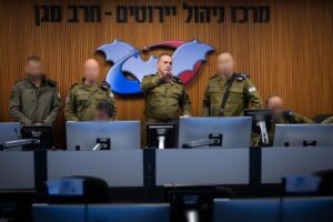 Accompanied by the commander of the Aerial Defense Array, Brig. Gen. K., and other senior officers, Zamir observed the battery’s response to a hypothetical ballistic missile scenario targeting Israel.