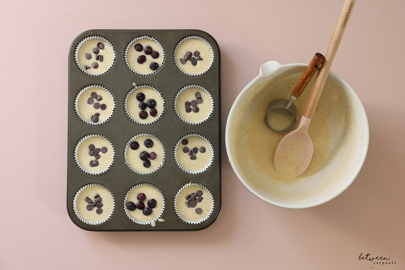 - ½ cup mini chocolate chips (do not sub with full size chocolate chips) or 1 cup frozen blueberries