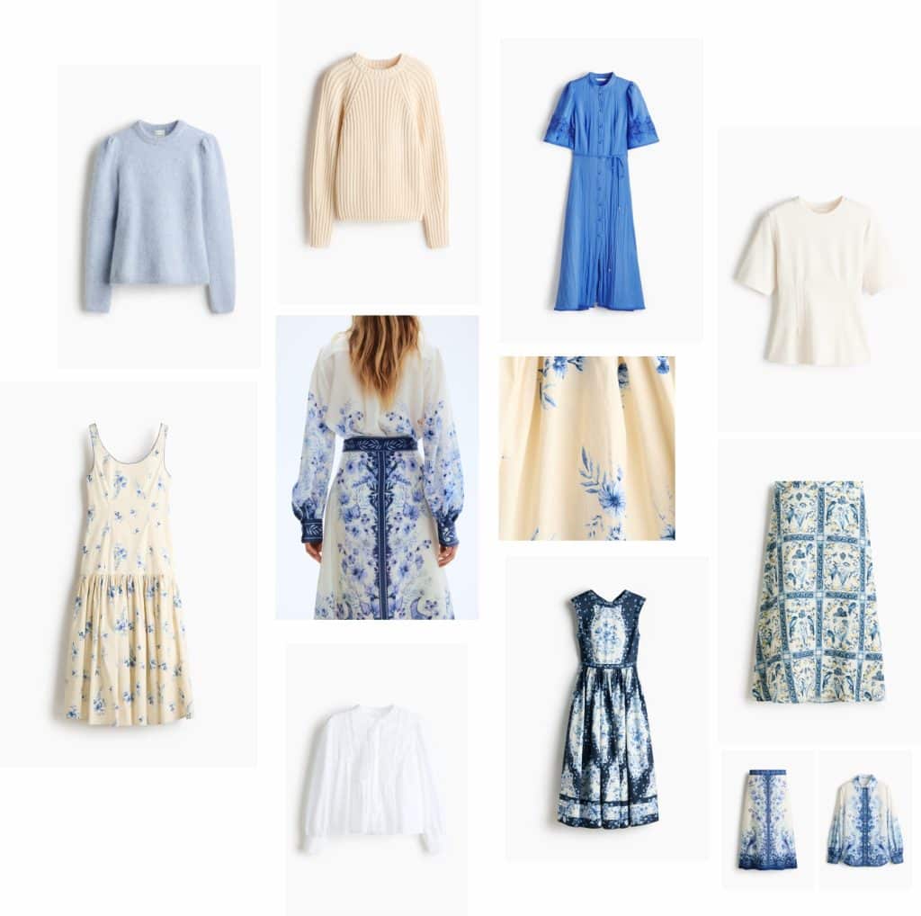 Blue Sweater | Long Cotton Jumper | Rib-knit Sweater | Printed Shirt – Printed Skirt | White Blouse | Blue Dress | Navy Poplin Dress | Tapered Interlock Top | Linen Blend Skirt