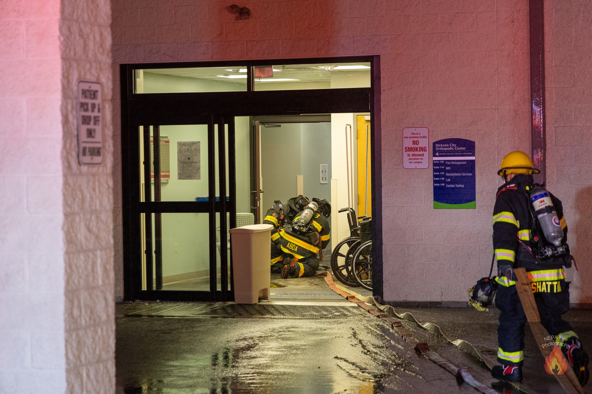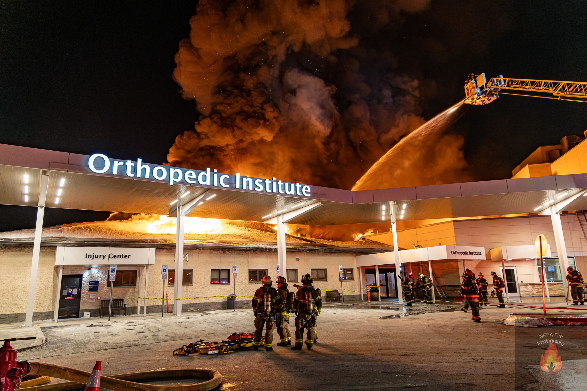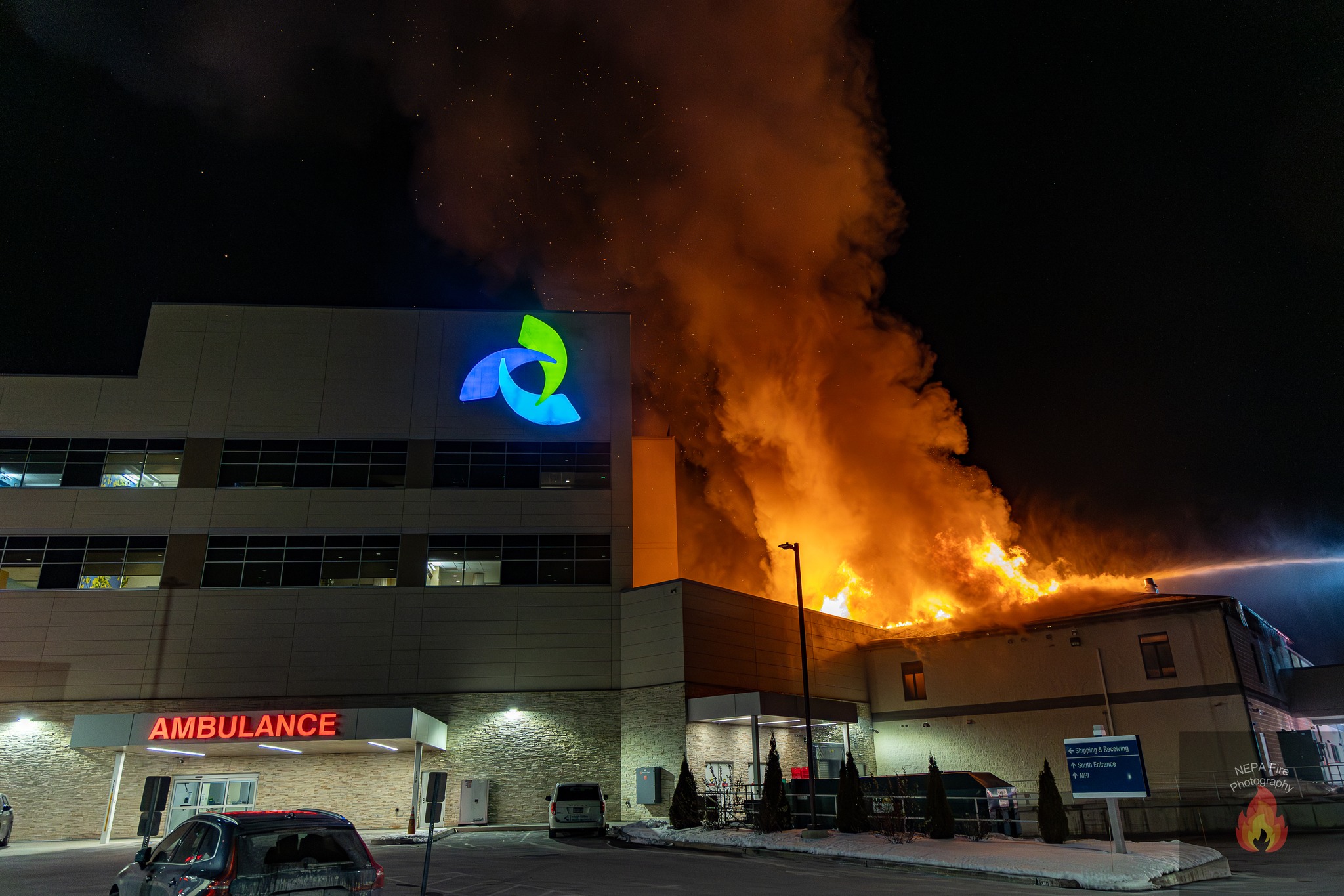 Emergency responders were called to the hospital around 9:40 p.m. after a fire broke out on the roof of the original Scranton Orthopedics structure, which is connected to the main hospital complex, according to the Dickson City Fire Department.