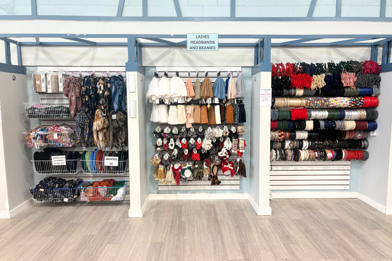 - Snoods, pre-tieds, hosiery, and hair accessories at a fraction of the price they usually cost.