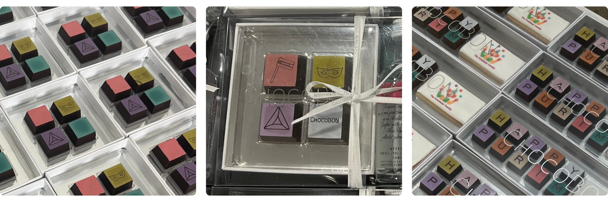 Celebrate Purim with ChocoBON! ChocoBON features gourmet flavor filled dark chocolate squares.