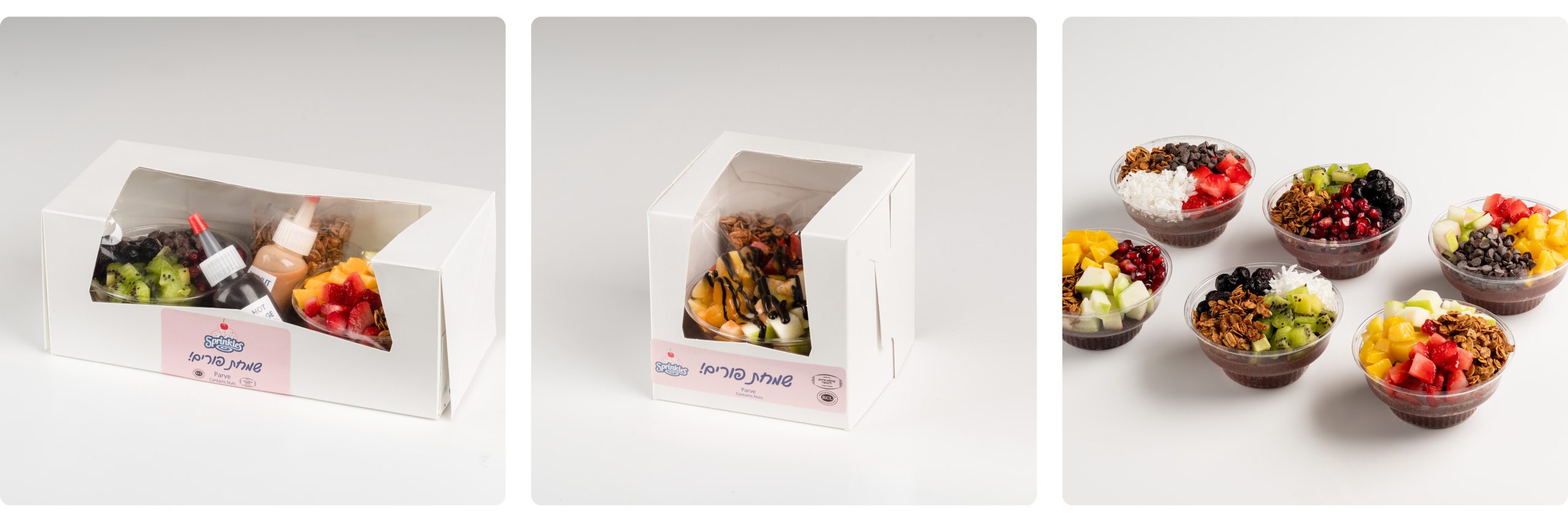 New this year from Sprinkles! Give individual acai cups for Mishloach Manos that your recipients are sure to enjoy! Two sizes are available, the small one includes one individual acai cup with assorted fruits and toppings, granola, and sauces. The bigger size has 2 individual acai cups with fruits and toppings plus 2 squeeze bottles with sauces and a packet of granola. This is a great option for bulk and corporate orders. gold