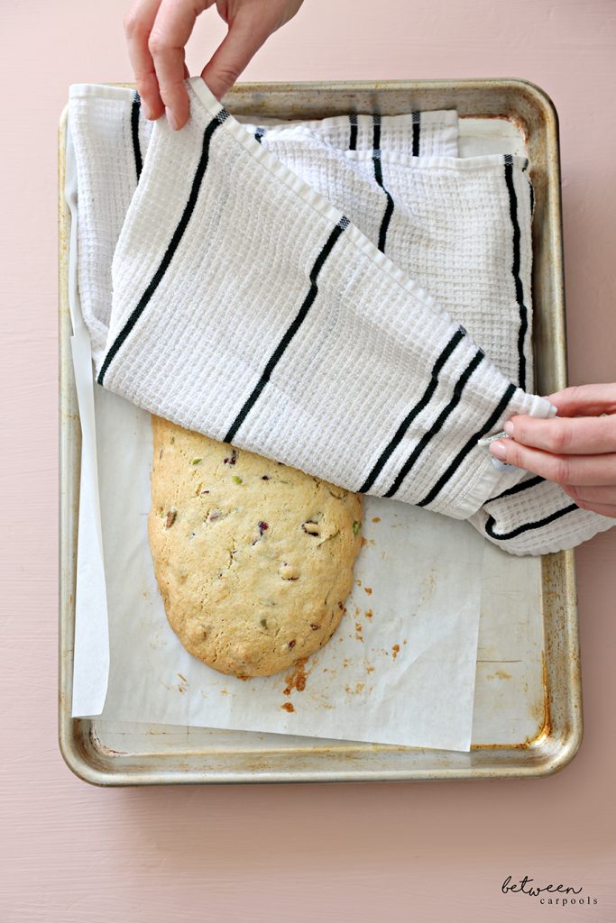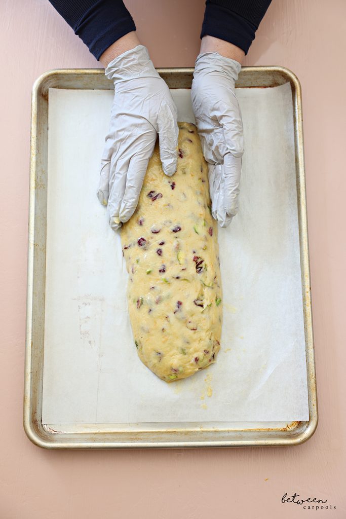 Form a log on a cookie sheet that has been lined with parchment paper. Dough may be sticky; wet hands with cool water to handle dough more easily.