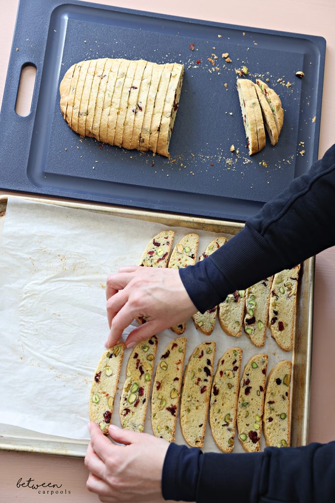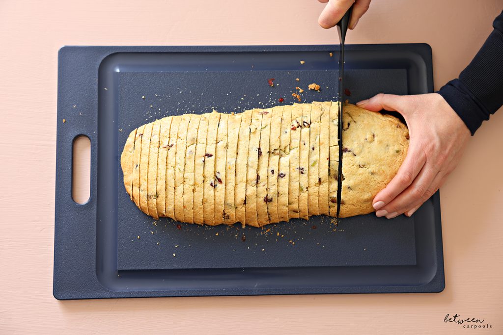 This recipe is brought to you thanks to my father. I was over at my parents’ house shmoozing one evening when my father asked if I had ever tried my sister’s biscotti. She had recently made them a batch and he couldn’t stop raving. He said I must get the recipe from her to post on Between Carpools. Gotta listen to my father, so that’s what I did!