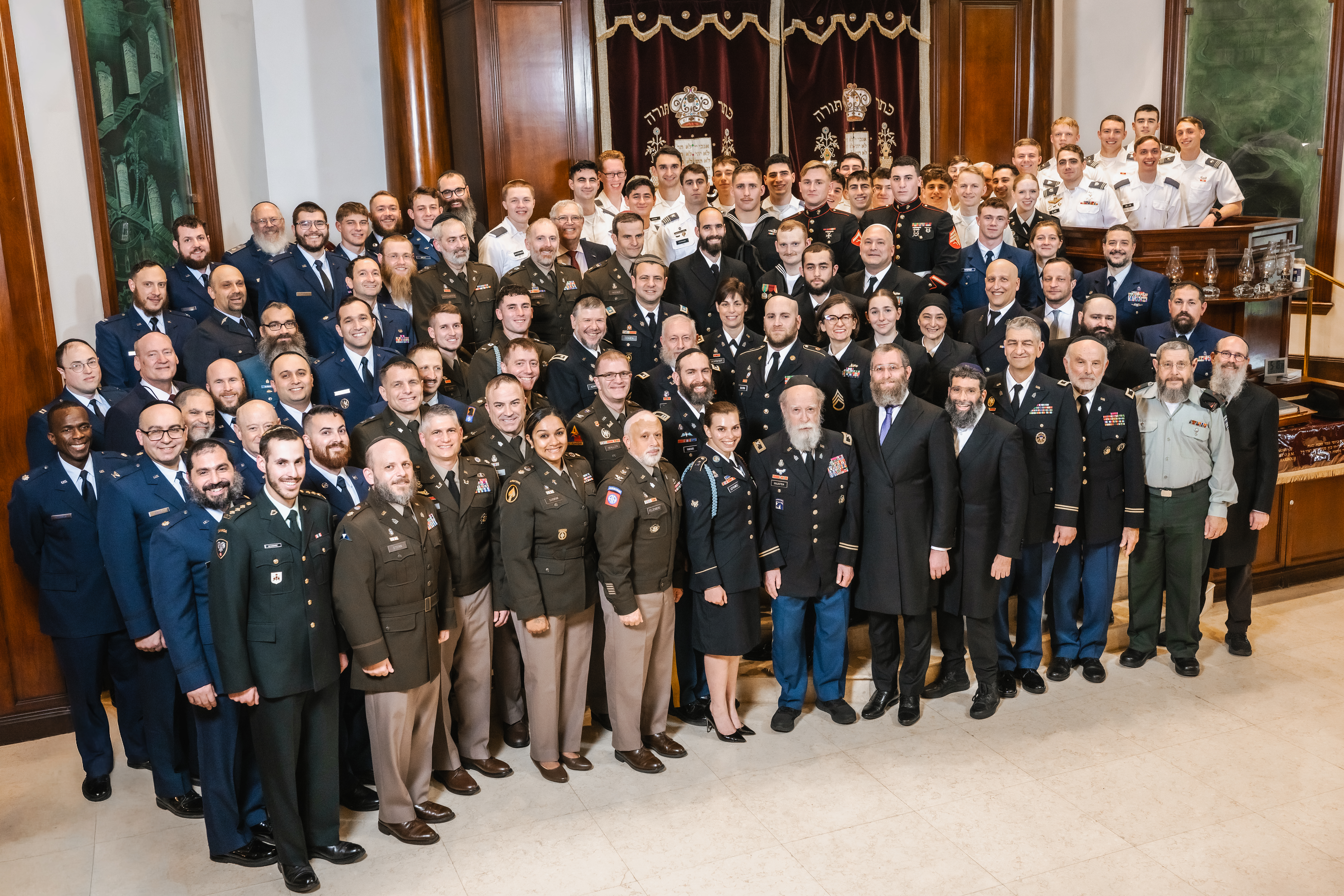 Among the participants were 25 cadets from the United States Military Academy, representing nearly 20 percent of its Jewish student population, along with cadets and personnel from the Naval, Air Force, and Coast Guard academies.