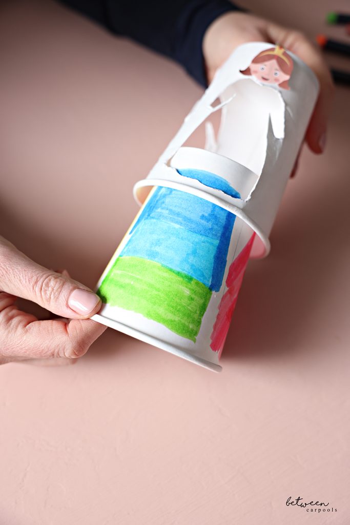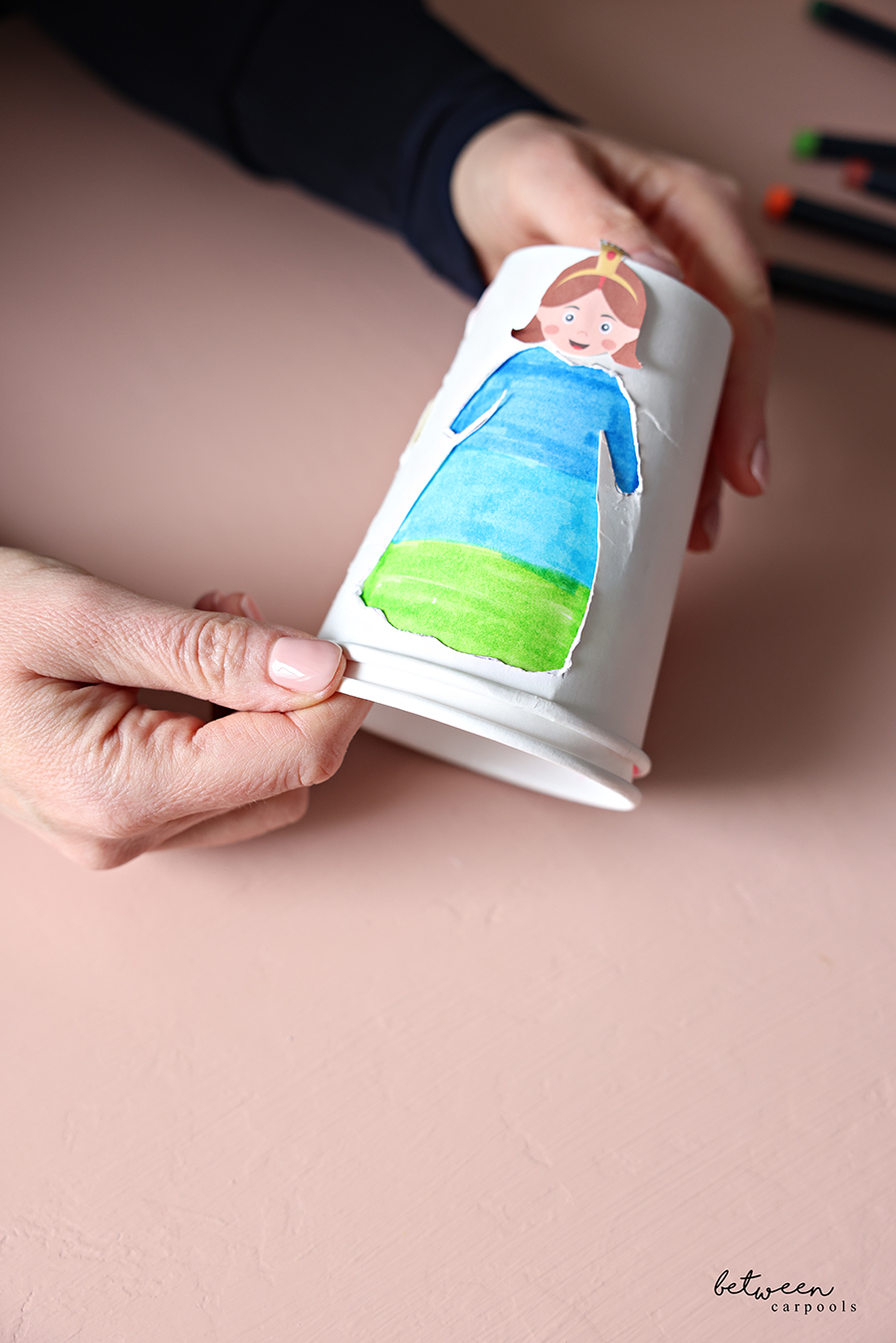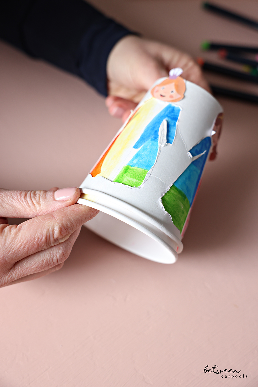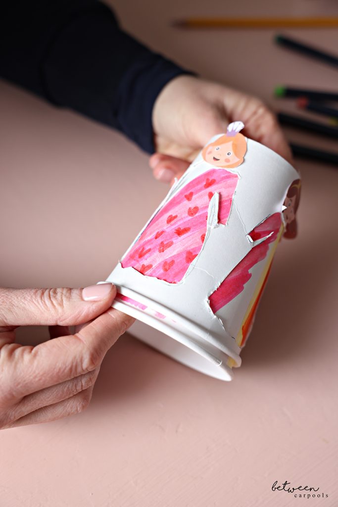 Now it’s time to create some patterns and prints on your second cup. Color them however you like! There’s no need to stay within any lines (however you do need to cover a space at least as big as an outfit cutout).