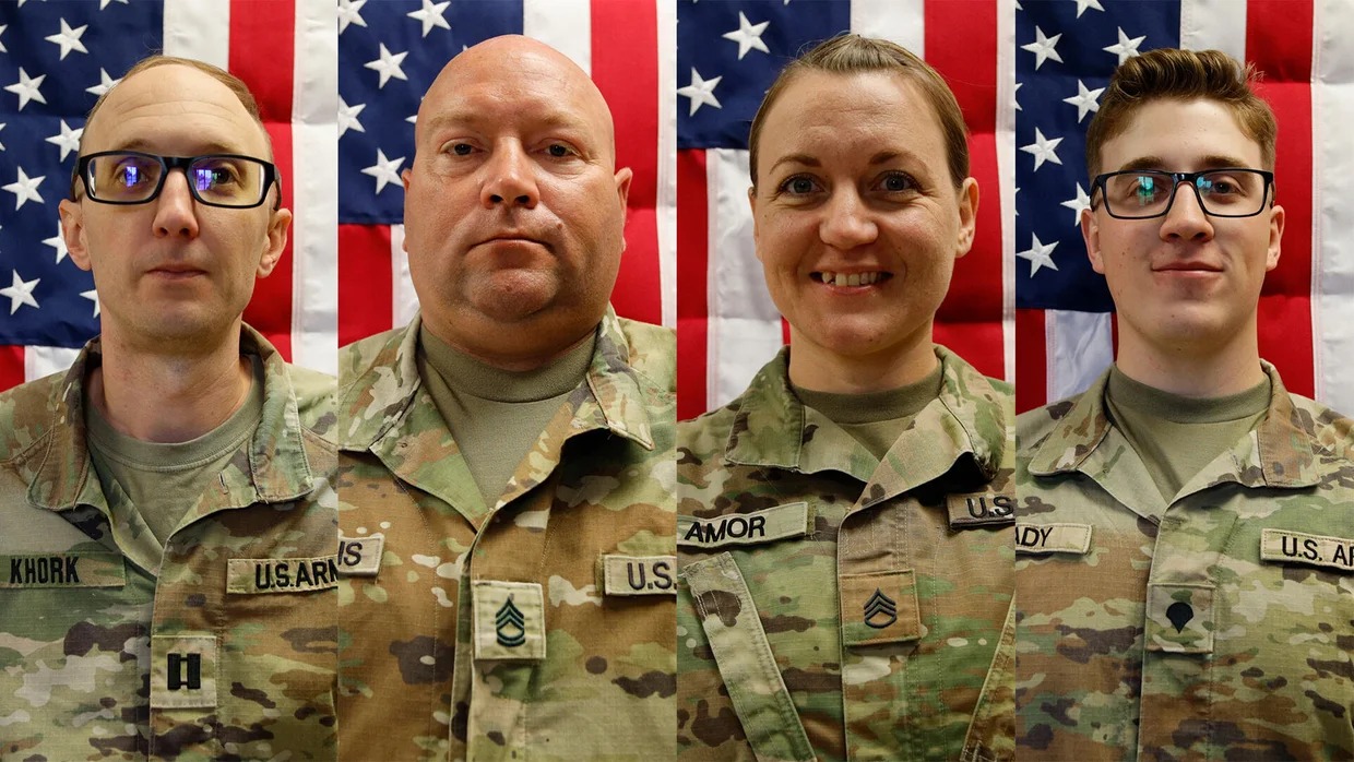 The fallen service members were identified as Capt. Cody A. Khork, 35, of Winter Haven, Florida; Sgt. 1st Class Noah L. Tietjens, 42, of Bellevue, Nebraska; Sgt. 1st Class Nicole M. Amor, 39, of White Bear Lake, Minnesota; and Sgt. Declan J. Coady, 20, of West Des Moines, Iowa.
