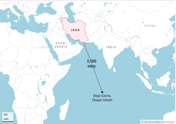 The Telegraph reports U.S. B-2 stealth bombers are expected to arrive at UK-linked bases “within days,” with preparations underway at Diego Garcia (Chagos Islands) and RAF Fairford in Gloucestershire.