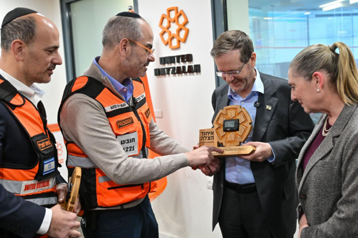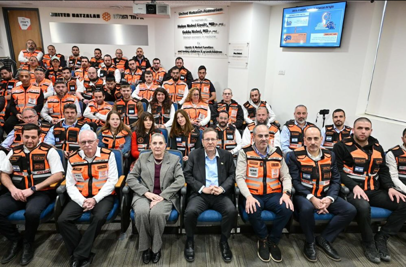 JERUSALEM (VINnews) — In the midst of Operation Roaring Lion, Yitzchak Herzog, the President of Israel, paid an official visit on Wednesday to the national headquarters of United Hatzalah in Jerusalem.