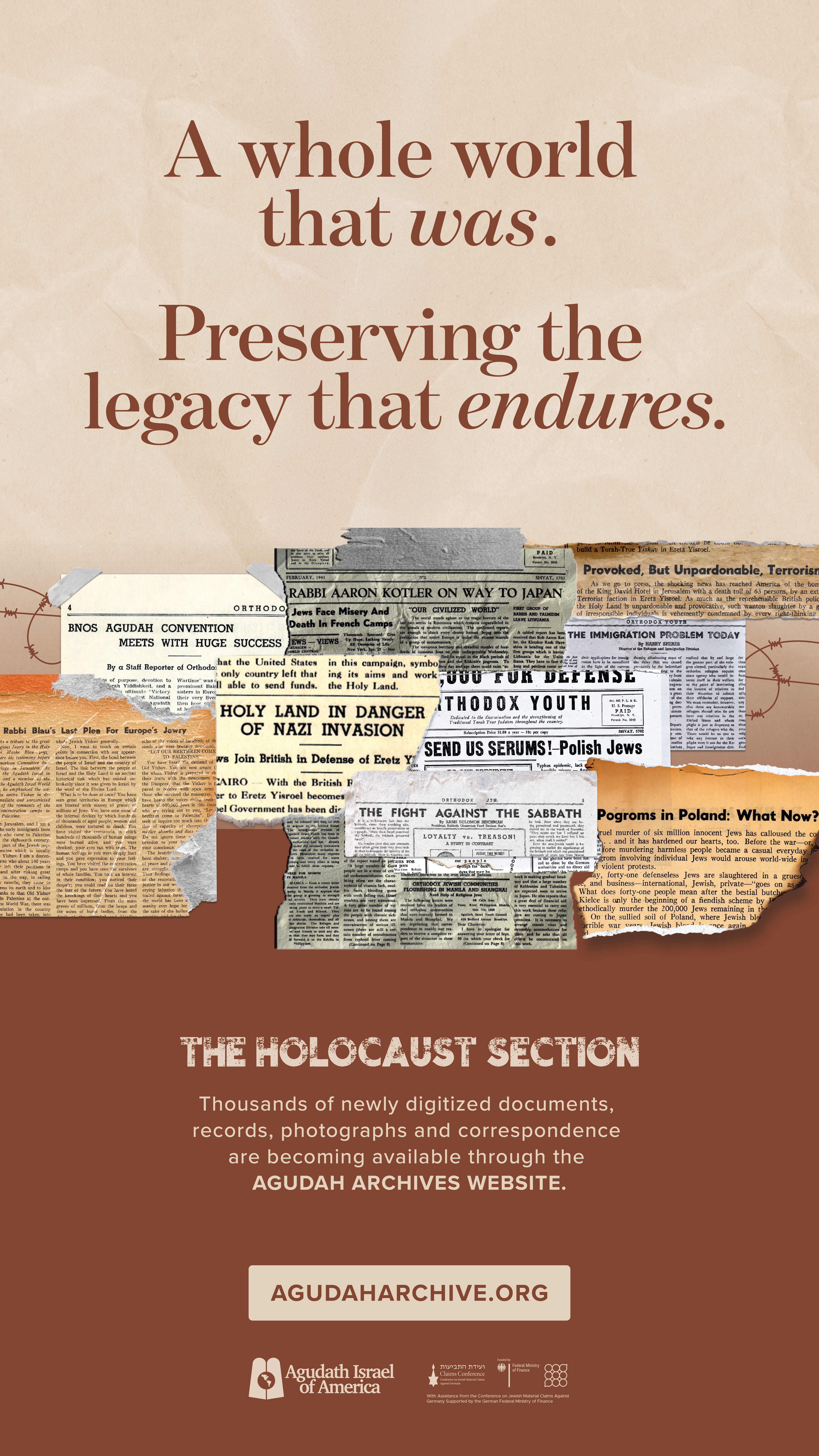 Agudath Israel of America is pleased to announce the opening of its Holocaust collection on the Agudah Archive website (https://agudaharchive.org/holocaust/).
