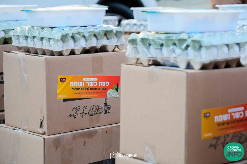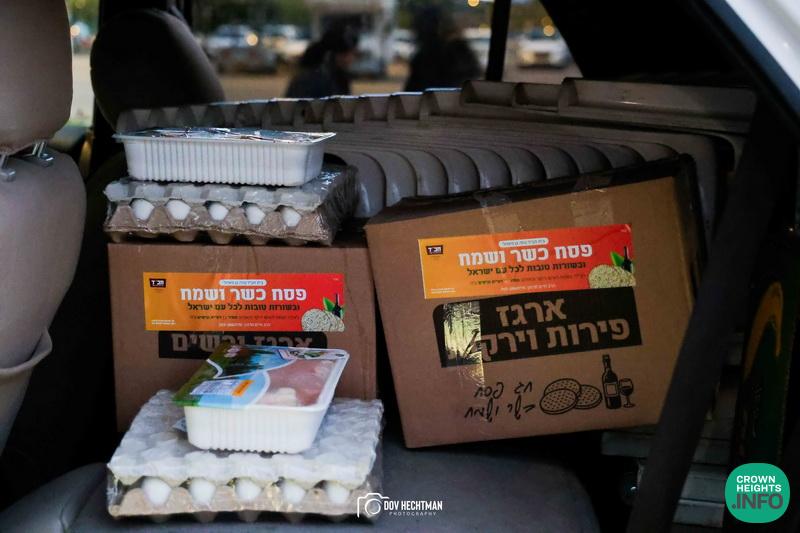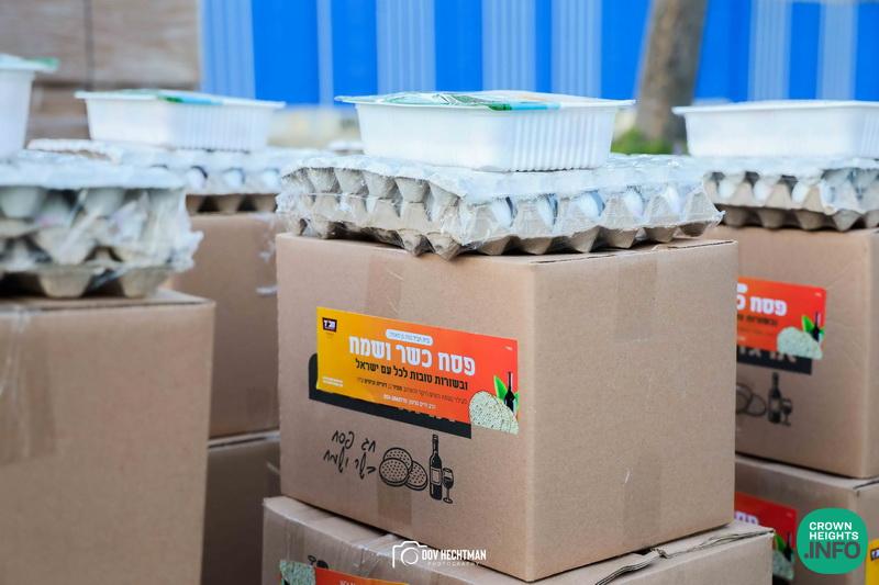 Each package included staple goods, fresh fruits and vegetables, chicken, eggs, and other essentials—ensuring that recipient families could properly prepare for a dignified and joyful Pesach.