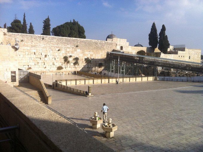 The Western Wall was empty today per the directions of the Homefront Command. The traditional “Birkat Kohanim” (priestly blessings) that take place every Sukkot and Passover and draw crowds upwards of 100,000 people, were in jeopardy.