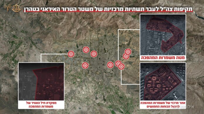 JERUSALEM (VINnews) – The Israeli military said the Israeli Air Force carried out “intensive strikes” over the past 24 hours targeting key infrastructure belonging to Iran’s Islamic Revolutionary Guard Corps (IRGC) in Tehran.