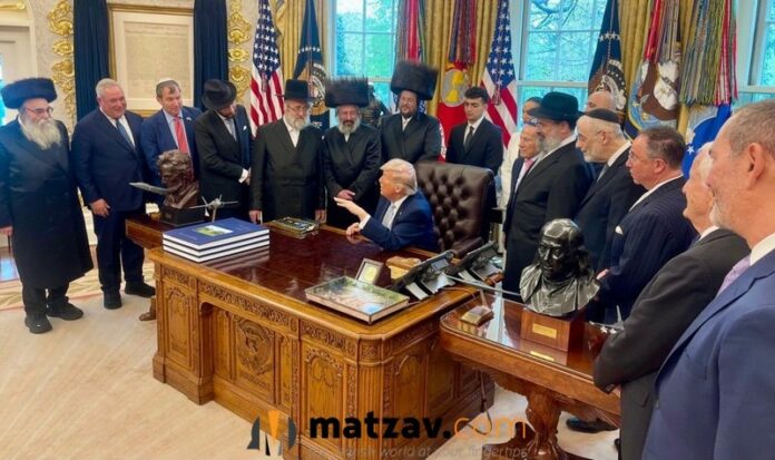 A Pesach gathering took place at the White House today, bringing together senior administration figures alongside prominent Jewish communal leaders for a reception and policy discussion ahead of the Yom Tov.