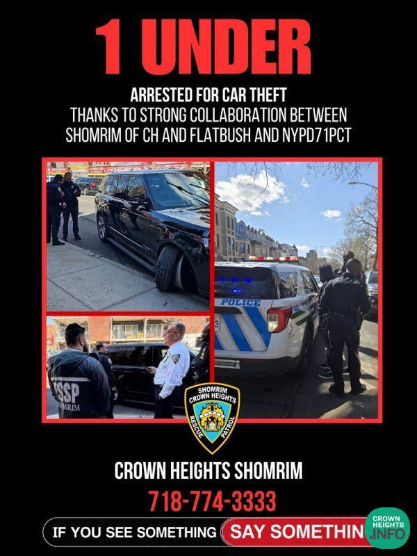 A vehicle reported stolen early Tuesday morning in the Flatbush neighborhood was successfully recovered hours later in Crown Heights, thanks to a coordinated effort between Shomrim and the NYPD.