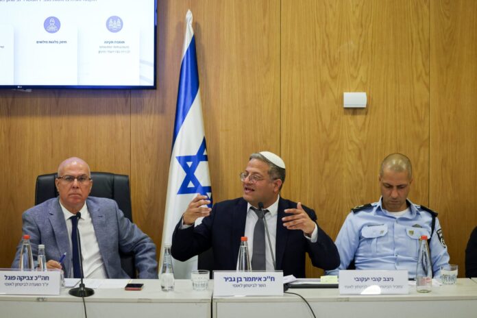 Ben-Gvir opened his remarks by affirming her claims: “She says I set policy and change the police? She’s right. She says I appointed more than 1,100 officers to implement my policy? She’s right. She says I back the fighters and support ‘Force 100’ against the blood libel against them? She’s right. The people of Israel elected me and Otzma Yehudit to lead all these things, and thank God we succeeded.”