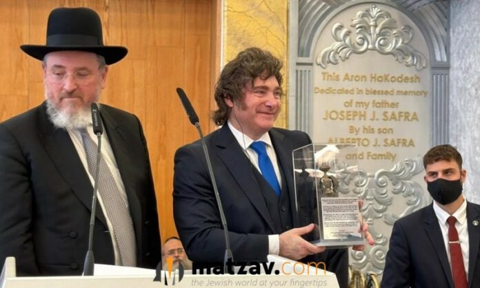 He continued by praising Milei and emphasizing the significance of the institution. “Honored President, without a doubt you have received certificates and titles from important countries, from institutions, from bodies and from distinguished organizations. But I do not think, and I do not know, whether until today you have received a title from an institution that is a link in a chain of generations, from a yeshiva that has existed among the Jewish people for 3,786 years.” He added a well-known teaching of Chazal: “From the days of our forefathers, a yeshiva has never ceased from Israel; from the days of Avraham Avinu, a yeshiva has never ceased from Israel.”