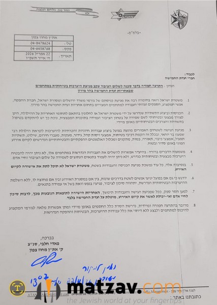 In response, the Committee of Five pushed back, sending a letter in which its director, Uri Vizubovsky, rejected the claims and accused the police of providing inaccurate and misleading information.