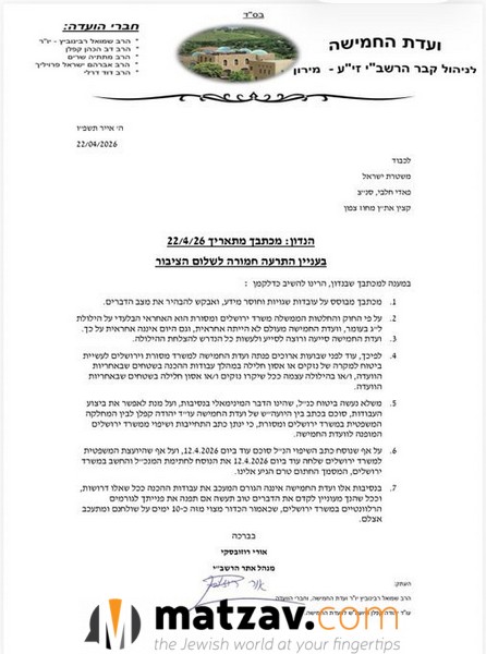 According to Vizubovsky, the Ministry of Jerusalem and Heritage holds sole responsibility for organizing the Lag BaOmer celebration, and the committee has never been, and is not currently, in charge of the event. He added that the matter has been in the ministry’s hands for some time, despite the committee having submitted all required documentation, yet no response has been received.